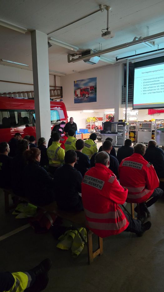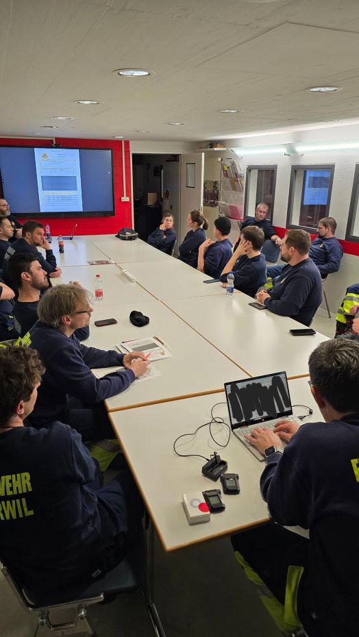 Am 14. Januar hatten wir unsere erste OfWmKpl-Übung mit der Feuerwehr Biel-Benken. Zuerst gab es wie gewohnt einen Vortrag für die beiden Feuerwehren. In diesem Jahr war das Thema "Türen & Schlösser". Die Feuerwehr Therwil wird sich mit diesem Thema noch intensiver beschäftigen. Danach gab es für uns einen Informationsaustausch und die Besprechung des Jahresprogrammes. In dieser Zeit hatte die Feuerwehr Biel-Benken eine eigene Lektion in der Fahrzeughalle. Danach haben wir gemeinsam einen gemütlichen Umtrunk genossen.